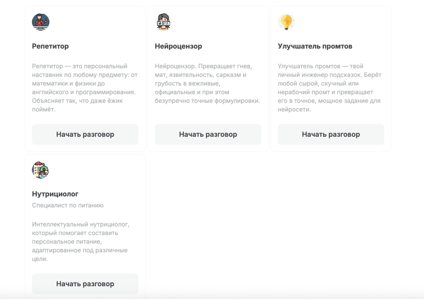 Персональные помощники под разные задачи (улучшатель промтов, смягчитель токсичных писем, сценарист, маркетолог, копирайтер и др.)