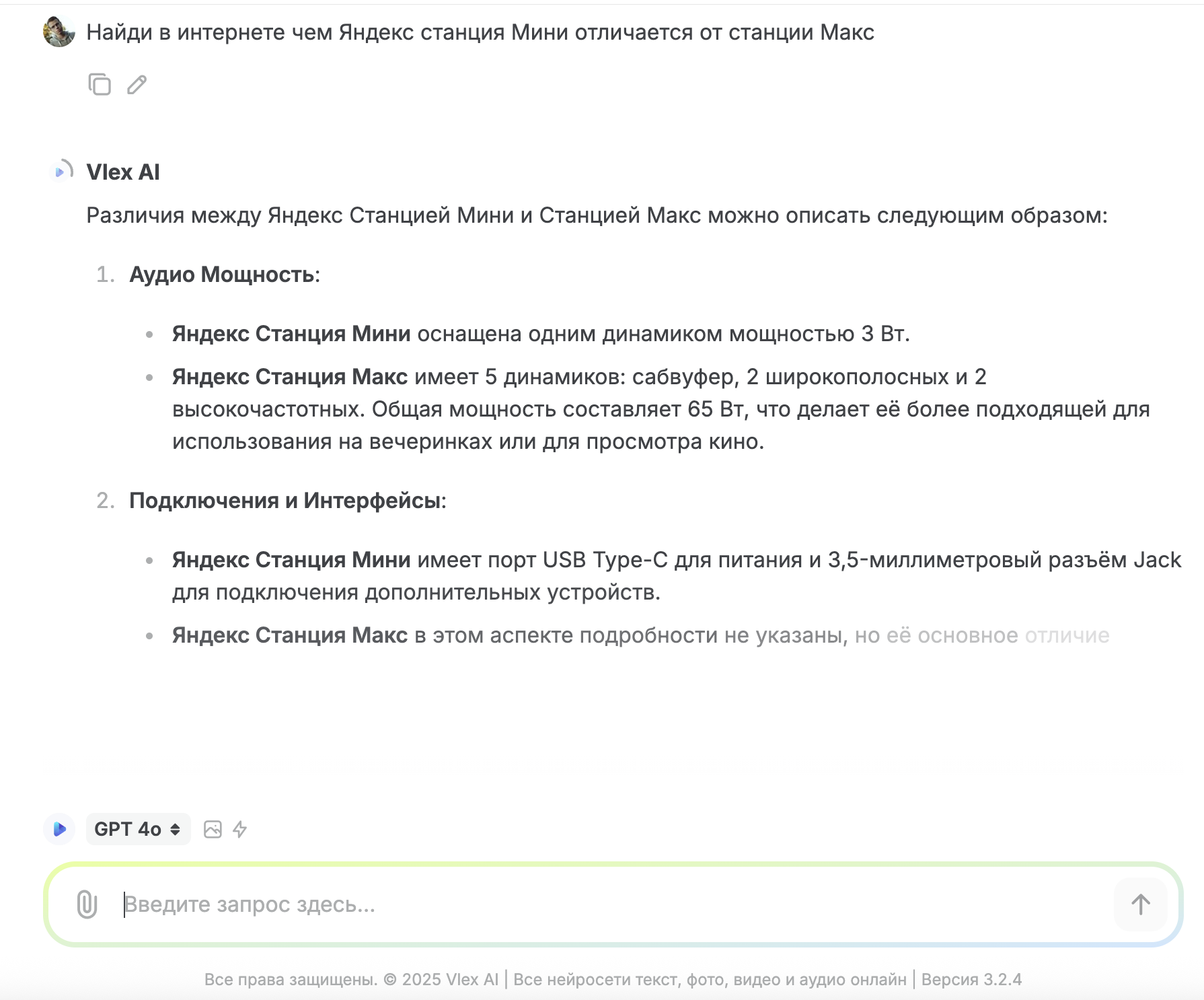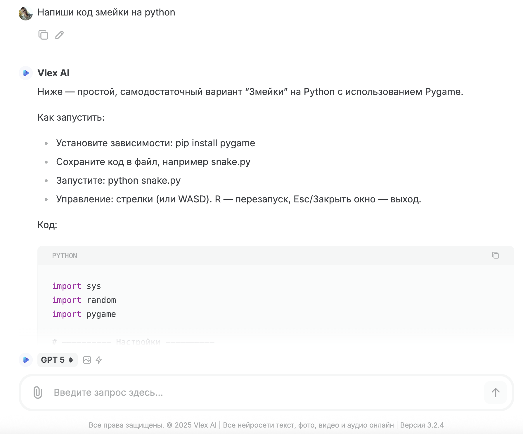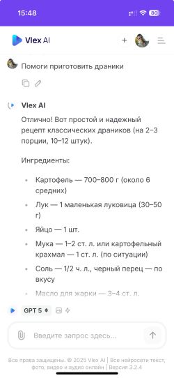 Решение есть — сервис Vlex AI, который предоставляет доступ ко всем актуальным версиям ChatGPT без VPN, бесплатно за бонусные кредиты на русском языке и с дополнительными функциями.