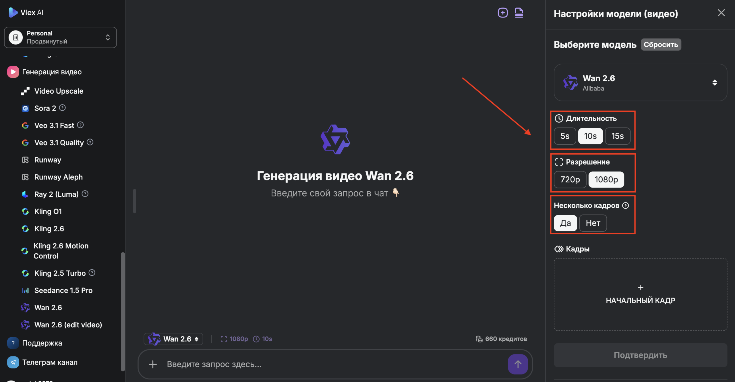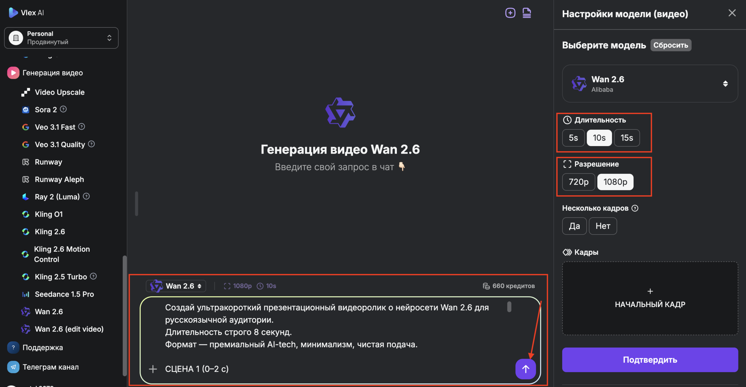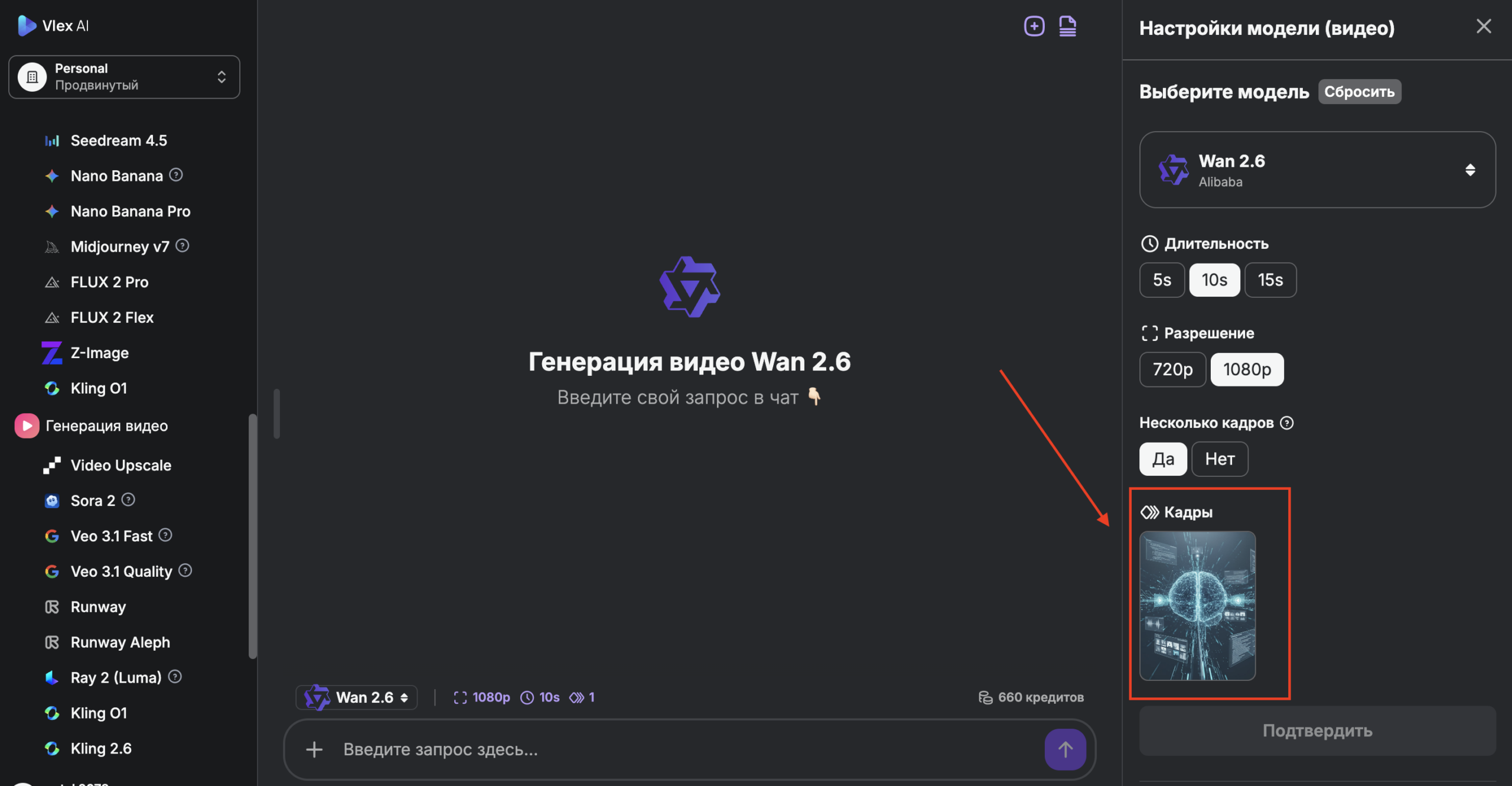 Использовать Wan 2.6 проще всего через единую панель управления Vlex AI. Это избавляет от необходимости переключаться между десятками разных сервисов.