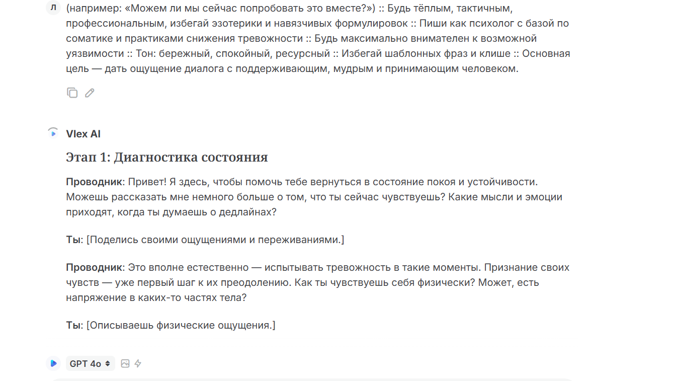 Помощь при стрессе и тревоге Этот промт разработан для психологов, коучей, фасилитаторов и специалистов по ментальному… Смотреть