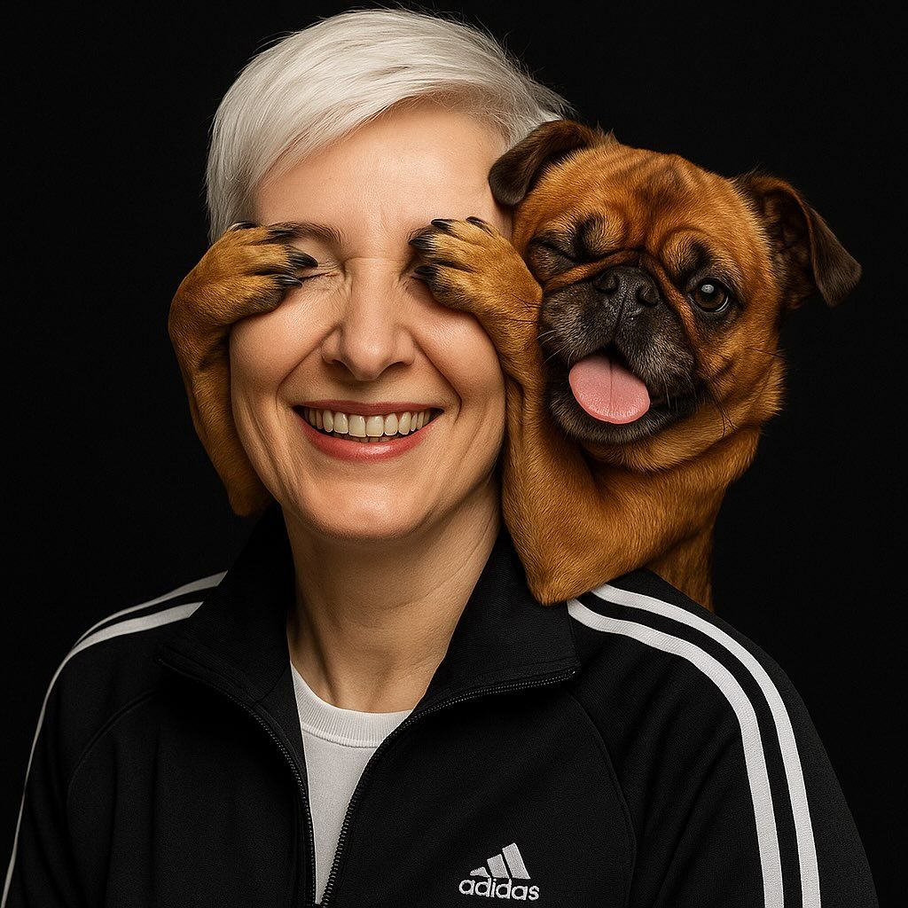 Портрет с собакой Эта ИИ-фотография передаёт момент искренней радости и теплоты дружбы между человеком и собакой. На… Смотреть