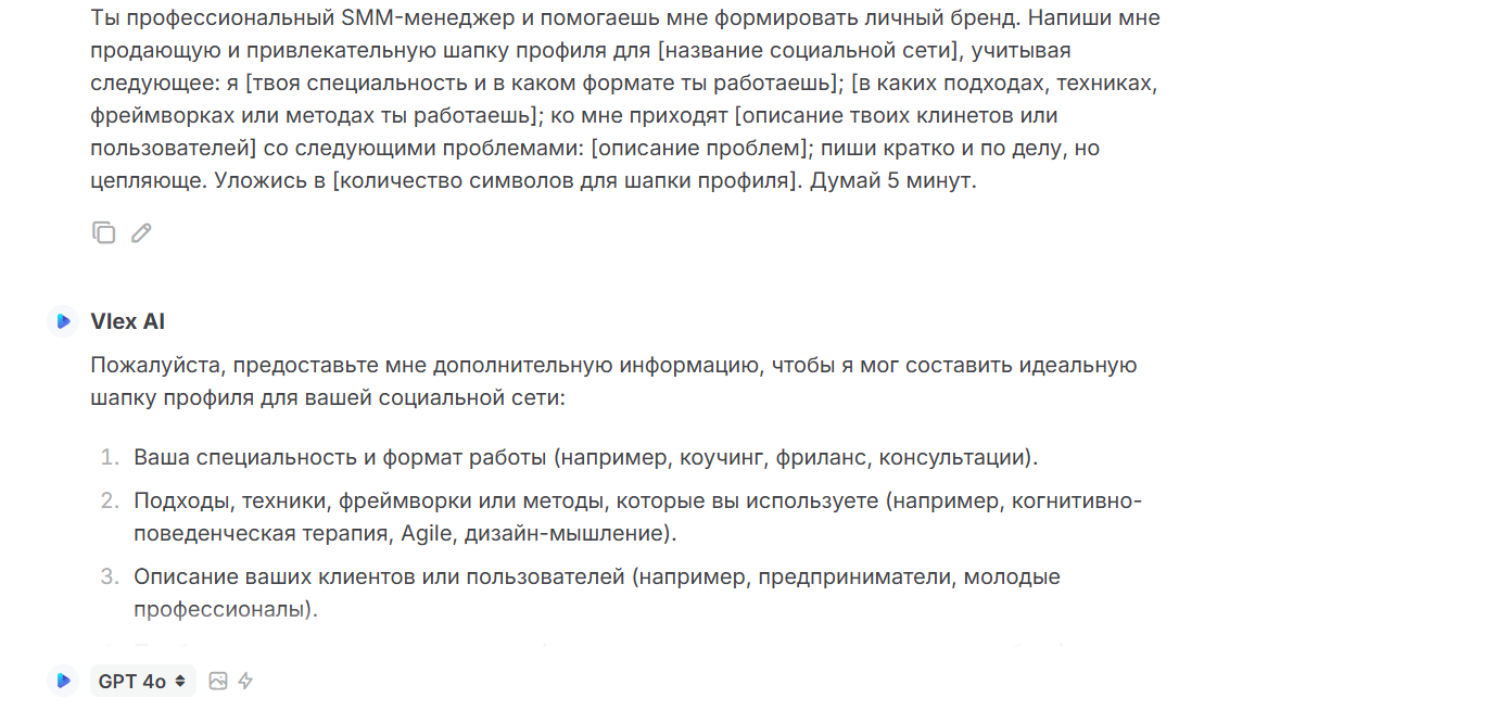 Создание био для социальной сети Создайте идеальное био для социальных сетей! Наш промт поможет вам создать уникальное описание… Смотреть
