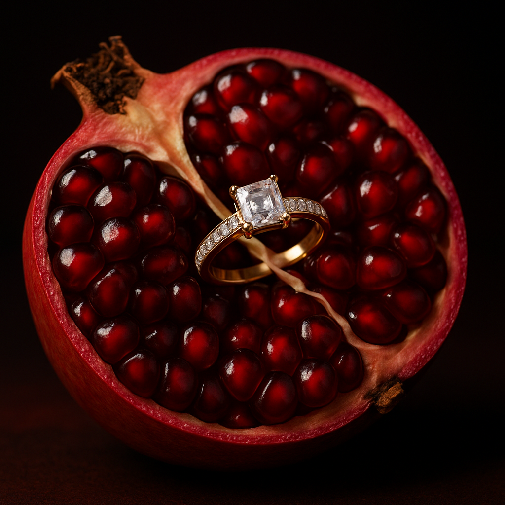 Кольцо на дольке граната Создайте сочный и яркий образ для вашего бренда бижутерии! Используйте этот промт, чтобы… Смотреть
