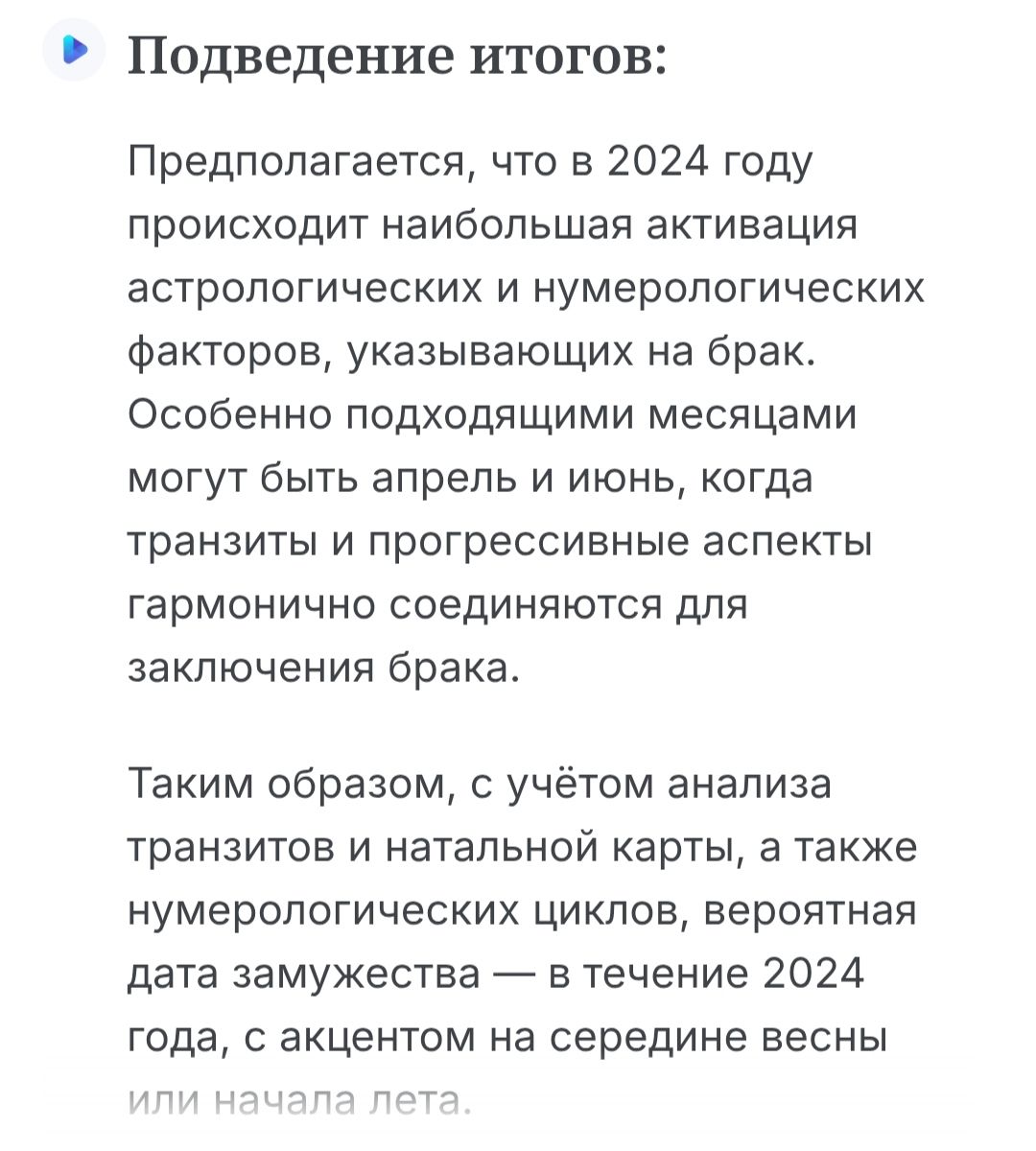 Дата замужества Интересуетесь предсказаниями? Попробуйте этот промт! Нейросеть создаст натальную карту по вашей… Смотреть