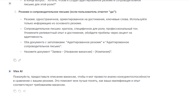 – В конце вопрос: “Хотите, чтобы я создал адаптированное резюме и сопроводительное письмо для этой роли?”