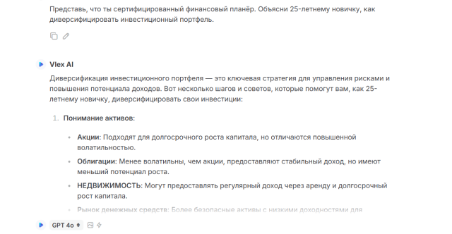 Промт помогает сформировать доверительное, поддерживающее и обучающее объяснение, чтобы у новичка не возникло страха перед инвестициями, а появилось понимание, с чего начать и как действовать безопасно.
