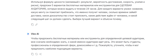 Промт учитывает ключевые элементы восприятия ценности (результат, вероятность, скорость, усилия, риски), поэтому выдаваемые материалы получаются не просто полезными, а стратегически выгодными и привлекательными. Подходит для запуска MVP, прогрева перед запуском продукта, подписных воронок, лид-магнитов, email-маркетинга и контент-маркетинга.