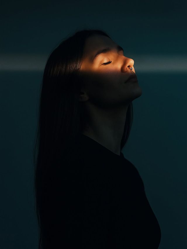 фон – глубокий градиент кинематографической сини, вызывающий загадочность и безмятежность. Один острый луч теплого белого света прорезает горизонтально по его или ее (на основе загруженного портретного фото) лицо, проходя прямо через его или ее (на основе загруженного портретного фото) глаза,создавая драматический визуальный контра его или ее (по загруженному портретному фото ) лица. Освещение мягкое ,но высококонтрастное , подчеркивая текстуру , сохраняя силуэт остальной части тела. Минималистичный, кинематографический композиция с сюрреалистичным освещением и спокойным эмоциональным тоном Вдохновлён изобразительным искусством и фотографией атмосферы