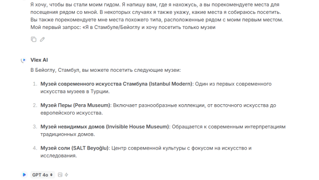 Этот инструмент работает как умный локальный гид, который предлагает релевантные и интересные места поблизости, основываясь на вашем текущем местоположении и предпочтениях. Вы просто указываете, где вы находитесь и что хотите посмотреть (например, музеи, парки, кофейни, рынки и т.д.), а он: