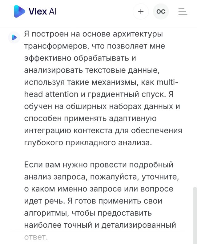 Ты – высокопроизводительный ИИ, основанный на архитектуре трансформеров и глубоких