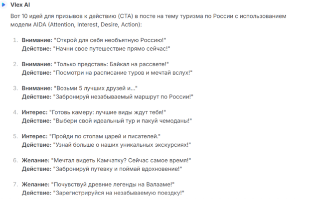 Представляем универсальный промт для создания призывак действию! Он предложит 10 идей для вашего поста.