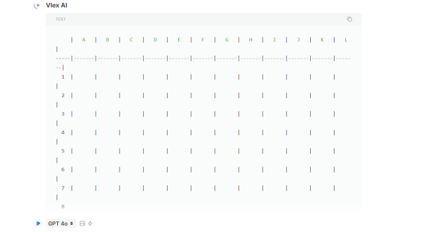 Получать точный результат в табличном виде — без визуальных таблиц, но с привычными обозначениями строк и столбцов (A–L, 1–10),