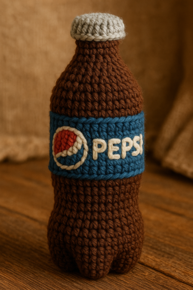 Сделай [название предмета] в стиле вязаной игрушки (амигуруми). Предмет должен быть полностью связан из ниток, с видимой текстурой петель, мягким объёмом и деталями, выполненными из пряжи.