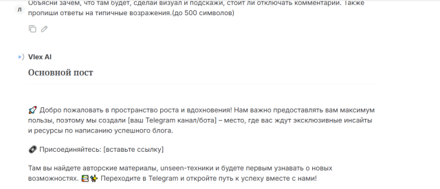 Инструмент для создания закреплённого поста в Threads, который мотивирует перейти в Telegram — в бот, канал или чат. Пост адаптирован под формат Threads (до 500 символов), создаёт интригу, аргументирует переход и стимулирует действие без давления.
