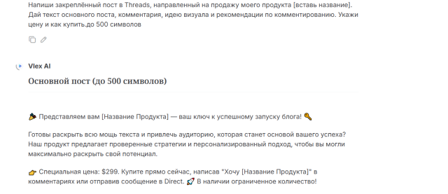 Инструмент для создания закреплённого продающего поста в Threads, заточенного под короткий формат платформы и сразу направленного на конверсию. Помогает кратко и мощно донести ценность продукта, вызвать интерес и побудить к покупке — без лишней воды и давления.