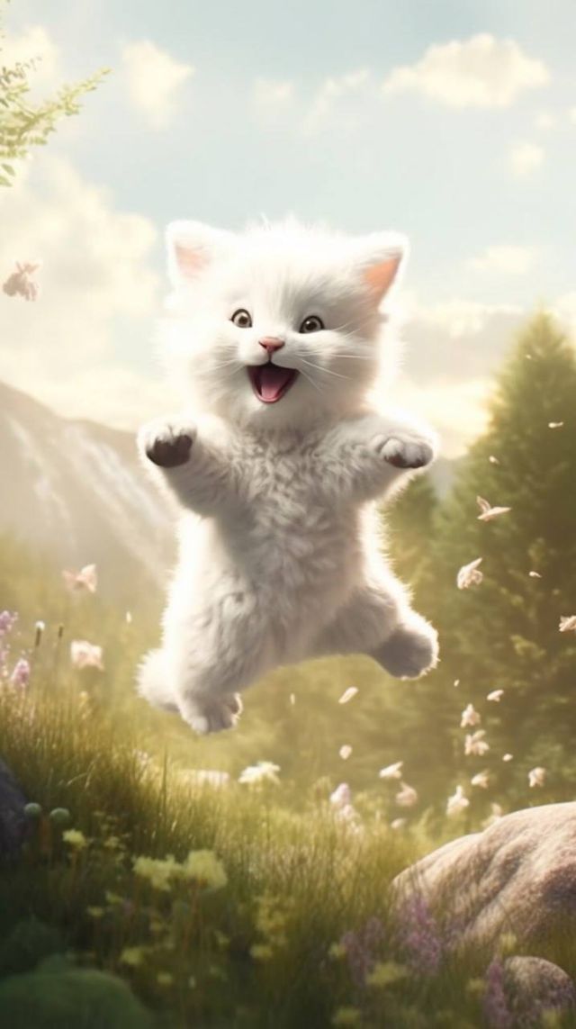 Создайте изображение счастливого котёнка, прыгающего от чистой радости. Этот промт для Midjourney позволяет получить очаровательное и кинематографичное изображение, передающее эмоции и динамику. Подходит для создания визуального контента, который вызывает положительные эмоции и привлекает внимание.