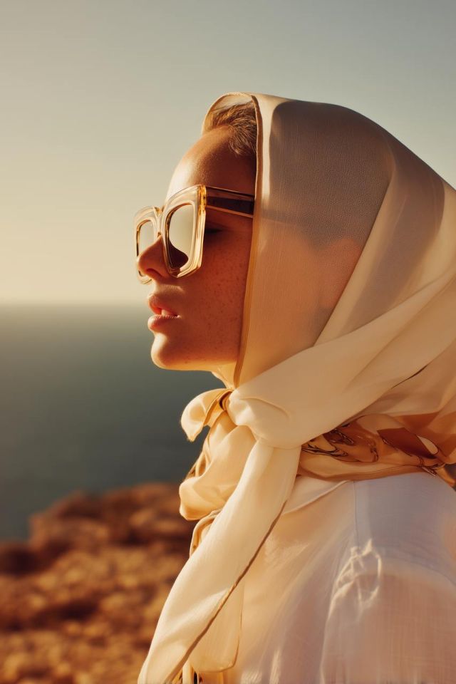 Это концепт fashion-съёмки в редакционном стиле, вдохновлённый ретро-эстетикой. На фоне (ретро-декора или пейзажа) представлен персонаж, чья поза и настроение подчеркивают атмосферу расслабленной роскоши и свободы. Одежда — винтажная, с изысканными деталями и продуманным образом, передающим дух моды прошлых эпох. Съёмка выполнена в широком кадре камерой Leica SL2-S с объективом 35mm Summicron, при мягком дневном свете. Палитра выдержана в приглушённых земляных тонах с бежево-золотистыми акцентами, подчёркнутыми чёткими тенями и слегка размытым горизонтом. Вся композиция объединена в гармоничный нейтральный стиль, где роскошь подана ненавязчиво и естественно.