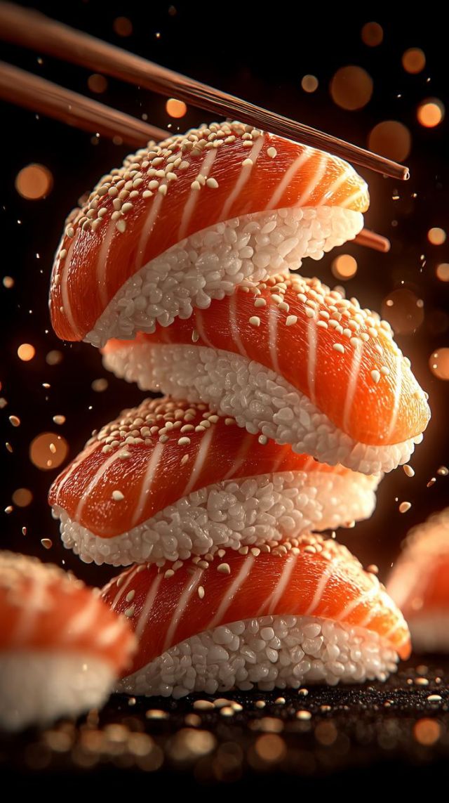 Это рекламный концепт в стиле профессиональной фуд-фотографии. В кадре показано аппетитное блюдо, парящее в воздухе, словно в замедленном кинематографичном моменте. Фон выполнен в тёмной студийной эстетике, с акцентом на драматичное освещение и игру света и тени. Изображение гипердетализировано и ультрареалистично: каждая текстура проработана до мельчайших деталей, что усиливает ощущение свежести и вкусности. Композиция вертикальная (9:16), с динамикой и художественным стилем, идеально подходящая для рекламных постеров или digital-кампаний.