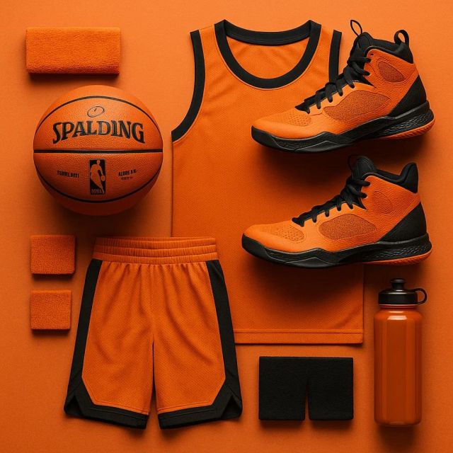 Это концепт флет-лея в стиле премиальной предметной съёмки. На квадратном кадре (1080×1080) сверху представлены элементы альпинистского снаряжения: каска, страховочная система, верёвки, карабины, спусковое устройство, кошки, альпинистские ботинки, утеплённые перчатки и термокуртка. Вся экипировка выдержана в брутальных серо-оранжевых тонах, что подчёркивает атмосферу силы и надёжности. Композиция идеально упорядочена и тщательно выстроена, каждая деталь смотрится чётко и реалистично. Визуализация выполнена в ультрареалистичном стиле, с акцентом на текстуру материалов и ощущение настоящей профессиональной рекламы снаряжения.