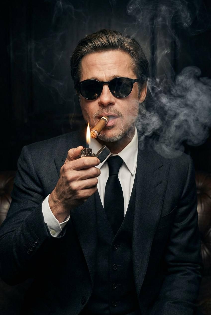 A cinematic portrait of a man wearing a dark, elegant three-piece suit with a white shirt and black tie, standing in a dimly lit environment. He is lighting a cigar with a metallic lighter, and thick smoke swirls around his head. The lighting is low-key and moody, with the warm glow of the flame standing out against the dark background. He wears round black sunglasses and has a calm, confident expression. The atmosphere feels mysterious, classy, and cinematic, with strong contrast and rich tones. Use the provided selfie as face reference (STRICT IDENTITY LOCK, exact likeness, exact facial geometry, no beautification). Aspect ratio 2:3.