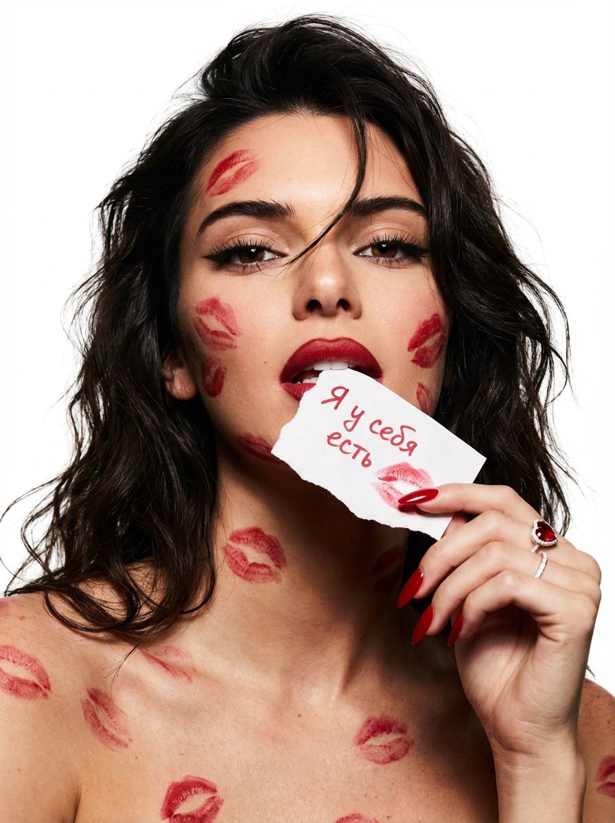 Не меняя внешность, сходство 100%. Фотореалистичный портрет крупным планом, кинематографическая вспышка Y2K. Чистый белый фон, эффектное профессиональное освещение сверху с глубиной и рельефными тенями. Голова поднята, камера находится на уровне глаз, взгляд проницательный, страстный и томный. Естественная небрежная прическа с легким объемом и свободными прядями, обрамляющими лицо. Выразительный лисий глаз только во внешних уголках, подчеркнутые ресницы, насыщенная красная помада с более темным контуром по краям. Она кусает зубами грубо оторванный листок бумаги, держа его за уголок; на бумаге красной помадой написаны слова “День самовлюбленных” и виден отпечаток поцелуя. Хаотичные следы поцелуев красной помадой на лице, шее, плечах. Белое серебряное тонкое кольцо с большим красным камнем сердцем. Красные длинные безупречные ногти.