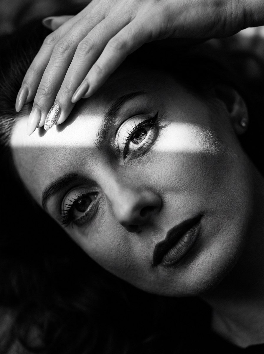 Shot with Leica Summilux 50mm f/1.4. Critical focus locked on the eyes, eyelashes razor sharp; rapid yet creamy falloff into soft bokeh toward hairline and background. Shallow depth of field consistent with close focusing distance.