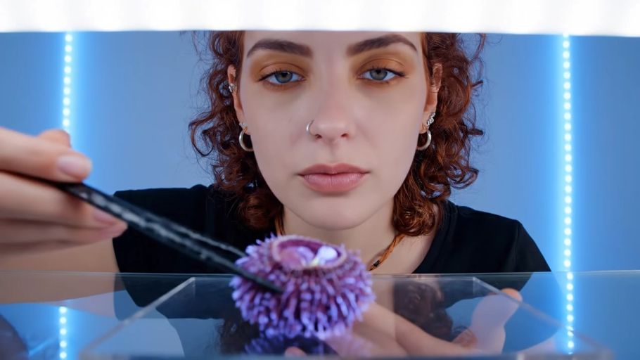 Видео начинается с экстремального крупного плана, сосредоточенного на мшистой земле у основания…