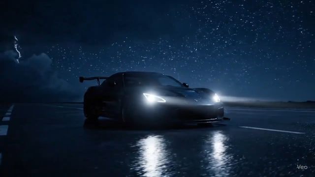 Сцена начинается ночью на пустой, слегка влажной дороге. Перед зрителем стоит чёрный спортивный автомобиль с глубоким глянцевым лаком, полностью статичный. Небо ясное, усыпано звёздами, вокруг тишина, слышны только лёгкие стрекоты сверчков. Атмосфера спокойная, почти медитативная.