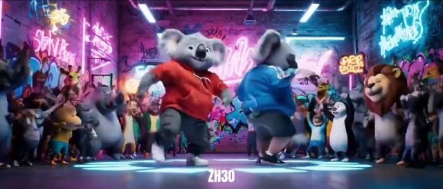 Сцена сочетает юмор, высокую динамику и энергетику танцевального соревнования, словно «Step Up», но с коалами в главных ролях. Камера перемещается с резкими панорамами и плавными зумами, чтобы подчеркнуть скорость и выразительность движений, оставляя зрителя полностью погружённым в сумасшедшую, красочную и весёлую атмосферу танцевального поединка.